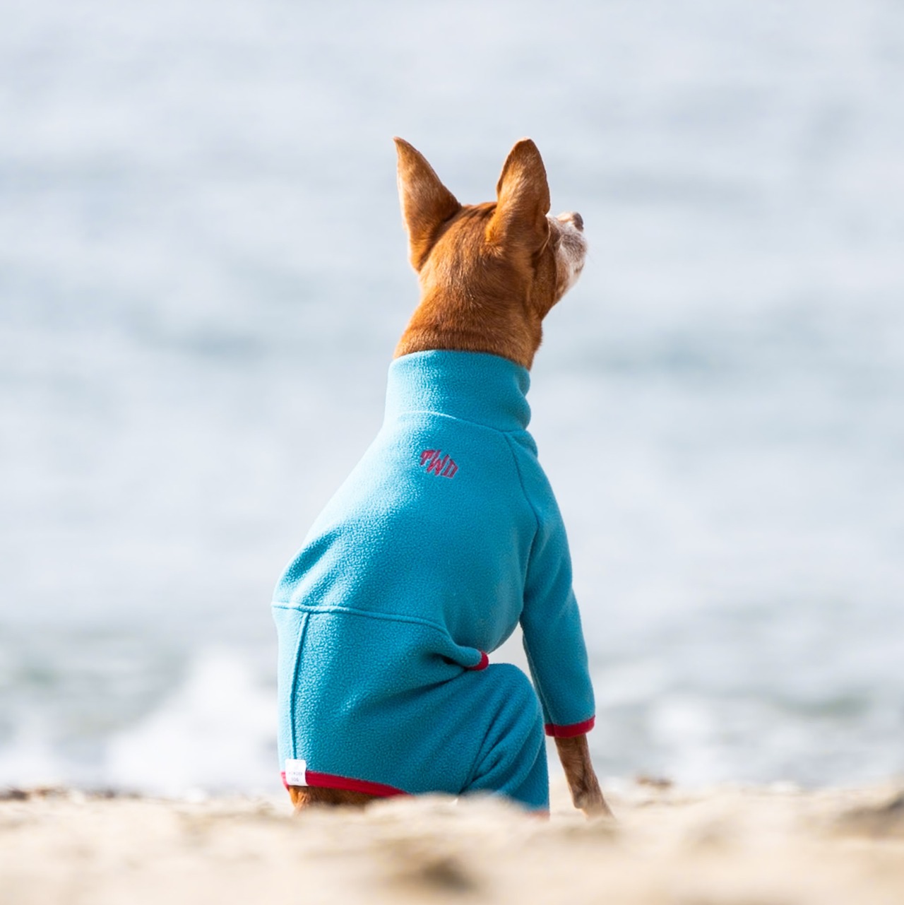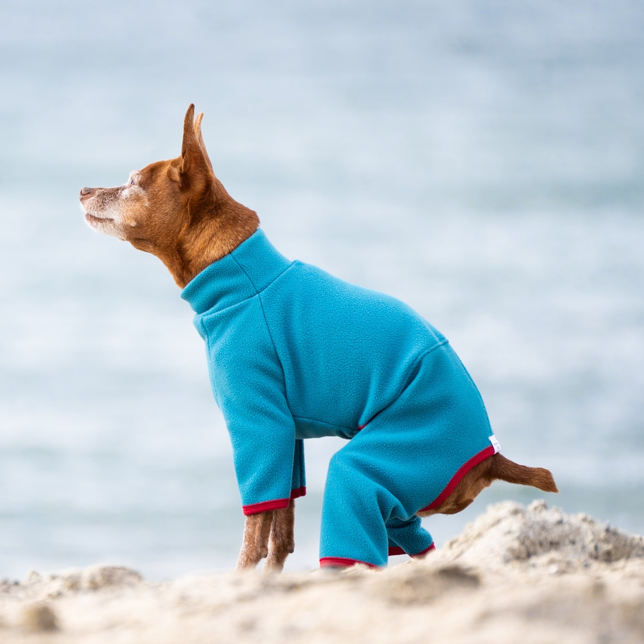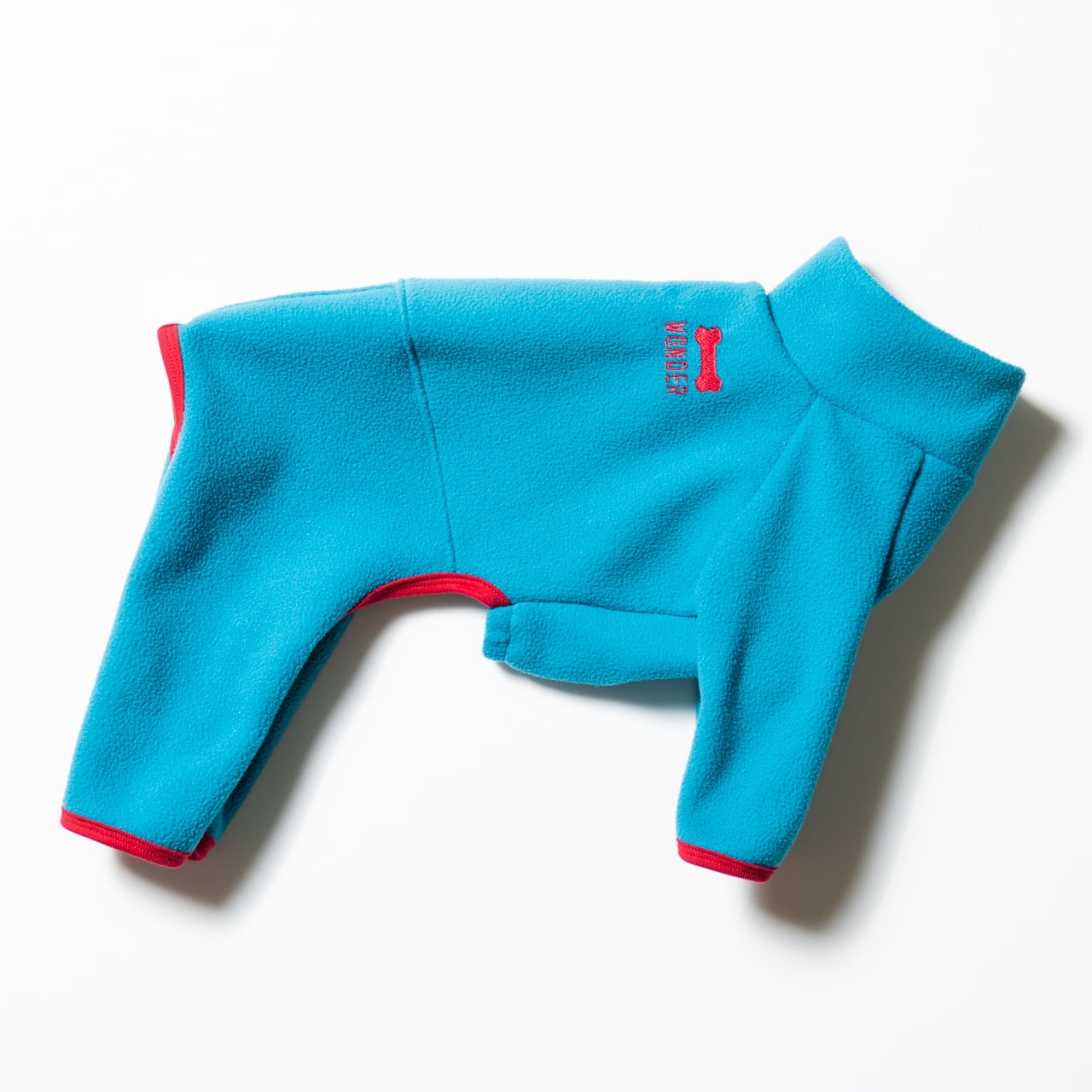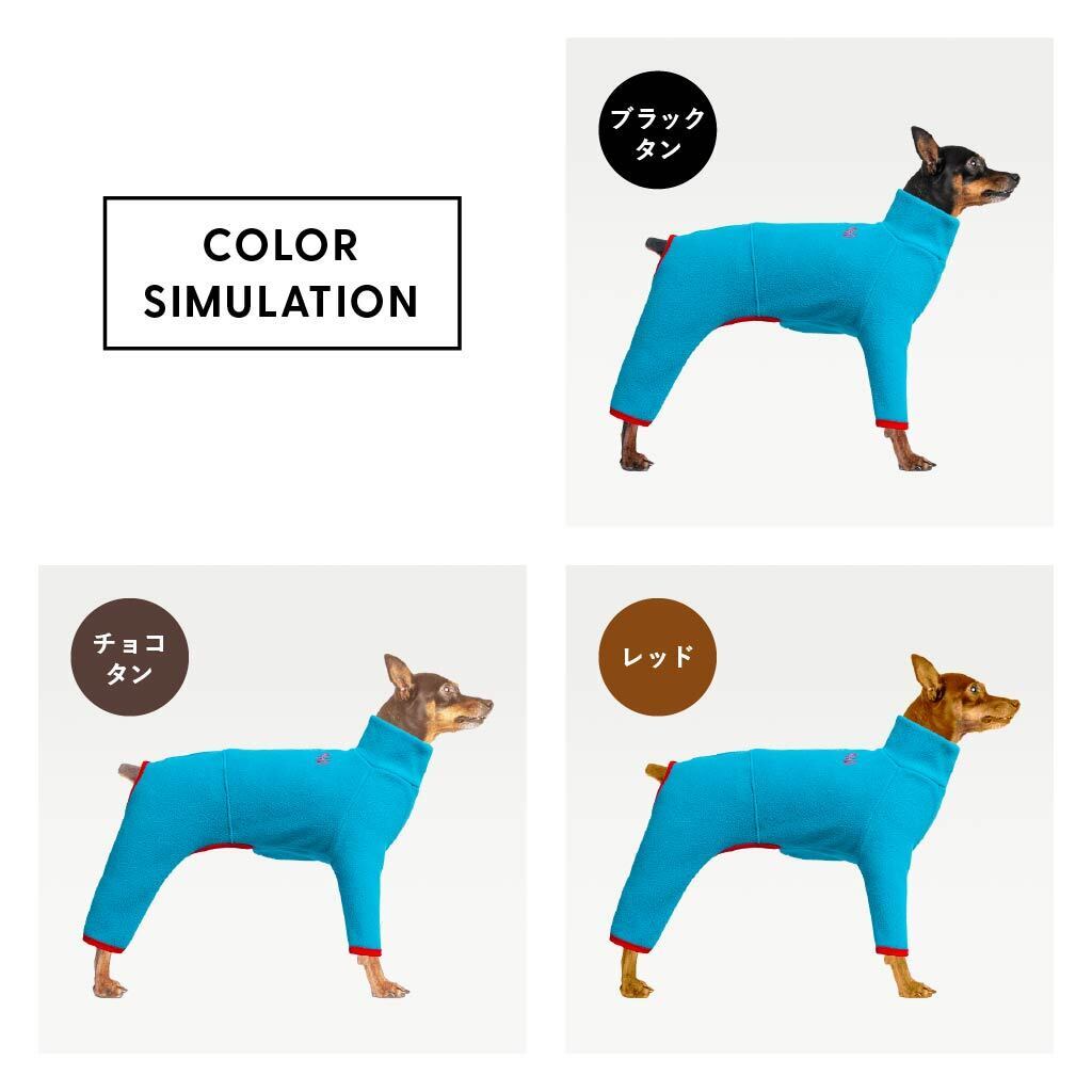【人気の定番アイテム】ハイネック フリース ロンパース(BLUE×RED)|ミニピン服